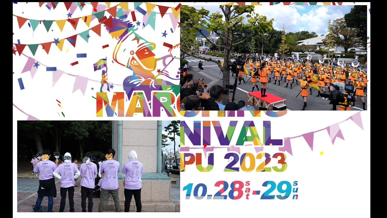 10月29日 大分県別府市主催「MARCHING CARNIVAL IN BEPPU 2023」でのマーチングパレードです。オープニングファンファーレ、記念撮影URL カラーガード隊 それ何?01:08 パレード スタート